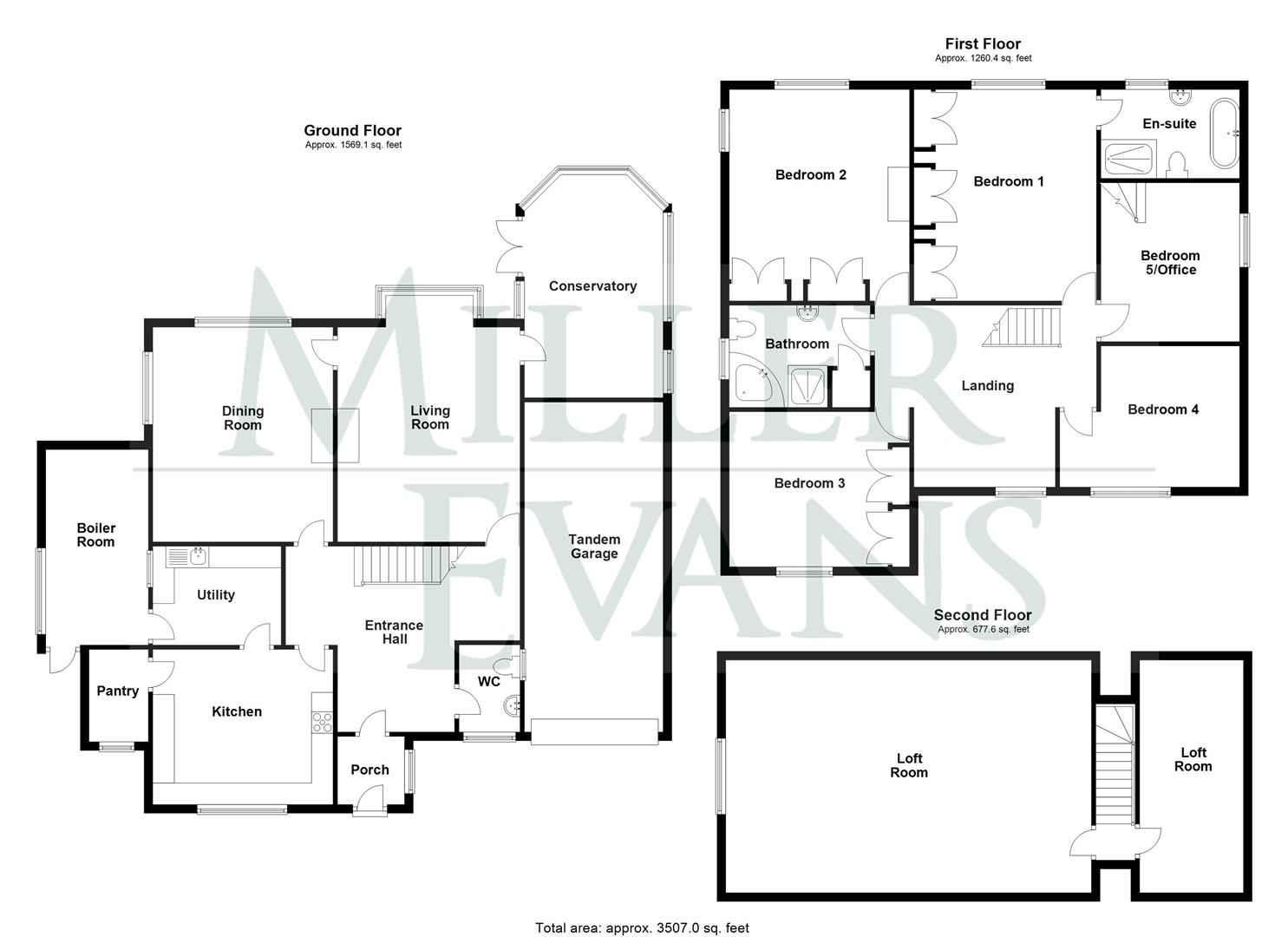 Staircase from bedroom five provides access to: