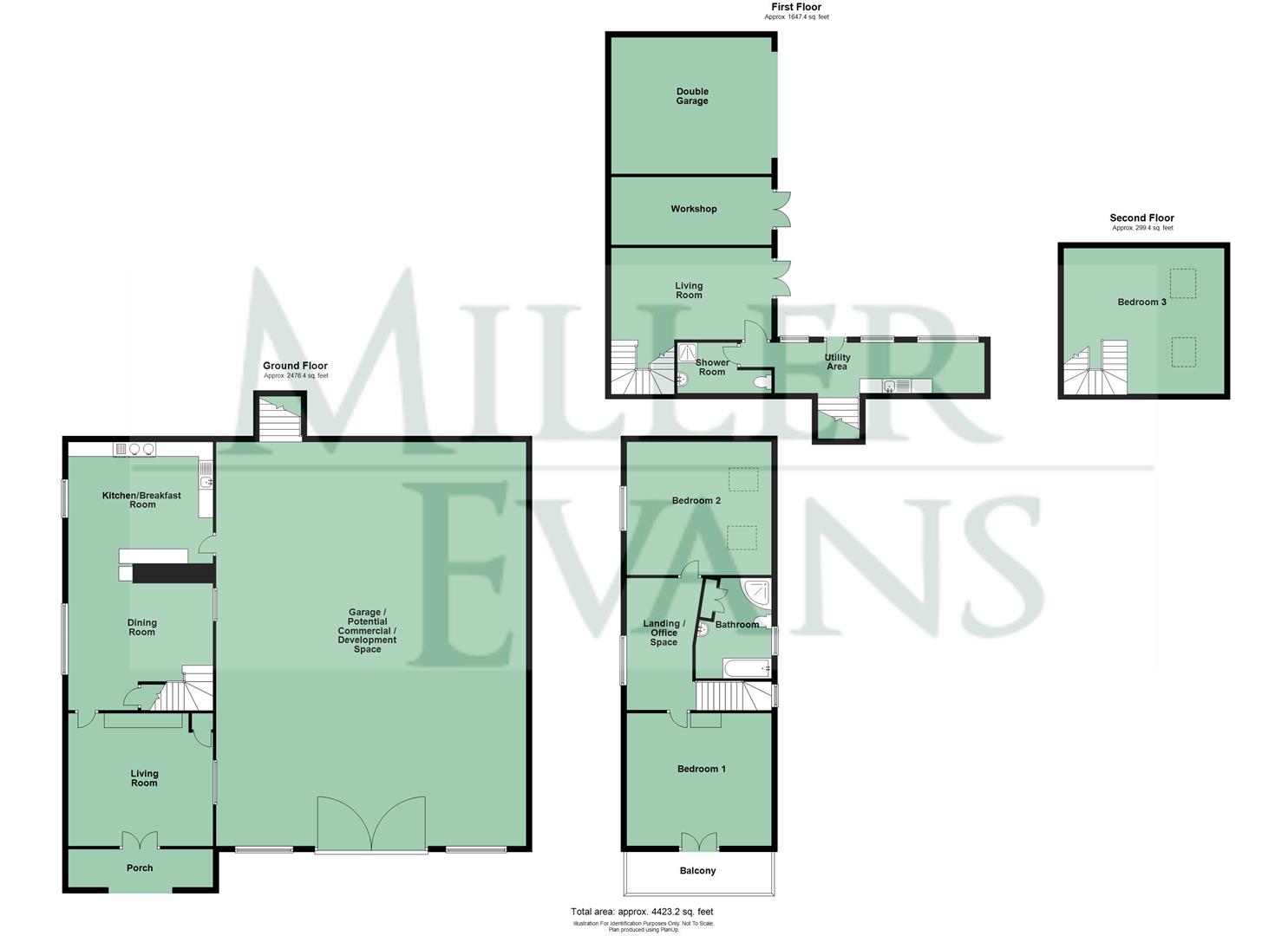 There is also a garage/potential commercial/development space, measuring around 1669 square feet,