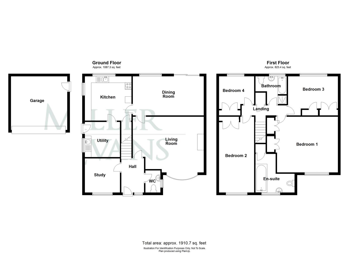 The property provides well planned and well proportioned accommodation throughout with rooms of pleasing dimensions and with the benefit of full gas fired central heating and double glazing, the accommodation briefly comprises: entrance hall, cloakroom, study, living room, dining room, kitchen, utility room; master bedroom with en-suite bathroom, three further bedrooms and family bathroom. Double garage, driveway with ample parking and front and rear gardens.